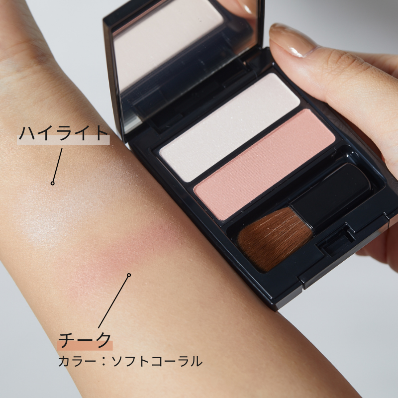 | 配合全成分 | タルク・シリカ・スクワラン・トリイソステアリン酸ポリグリセリル-2・ラウロイルリシン・水酸化AI・ヒメコウジ葉エキス・(+/-)・マイカ・酸化チタン・ホウケイ酸(Ca/AI)・酸化鉄・グンジョウ・酸化スズ・ラウロイルグルタミン酸Na・リシン・塩化Mg |